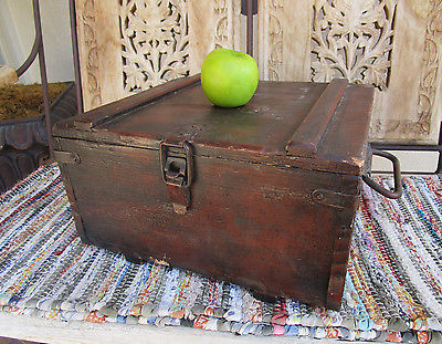 Title (ebay affiliate link): RUSTIC SMALL PRIMITIVE WOOD ATTIC BOX STORAGE TRUNK w/HINGED LID & IRON HANDLES