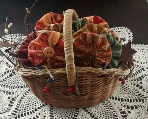 Title (ebay affiliate link): Set / 15 handmade primitive button yo yo ornies / bowl fillers colors of Autumn