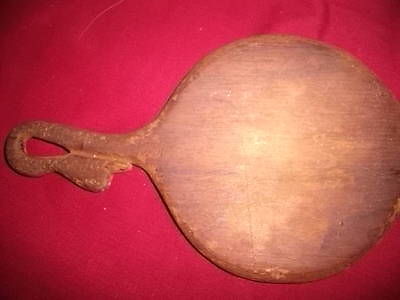 Title (ebay affiliate link): ANTIQUE PRIMITIVE WOODEN CUTTING BOARD KITCHEN TOOL 7 INCH DIAMETER UNIQUE!!!