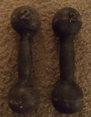 Title (ebay affiliate link): 2 Antique Vintage Dumbbells 2 lbs Cast Iron Primitive Round Globe Weights Strong