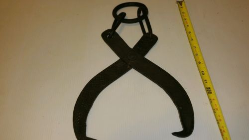 Vintage Black Iron Antique American Primitive Ice Block Tongs Hook