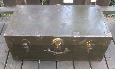 Vintage Wood and Metal Army Green Trunk Chest footlocker Antique with Lining