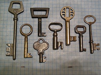 8 ANTIQUE OLD SKELETON, FURNITURE, BARREL, CABINET AND LOCK KEYS