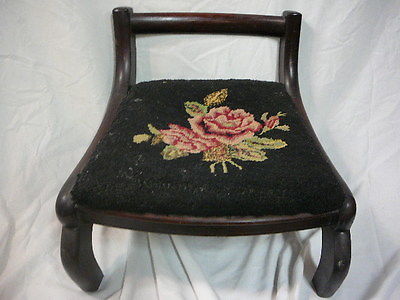 Title (ebay affiliate link): Vintage Antique Foot Stool-Wood Frame-Cloth Seat-Floral Design