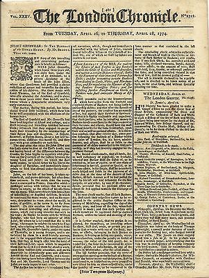 Orig. 1774 English newspaper THE LONDON CHRONICLE April 26 - 28, 1774