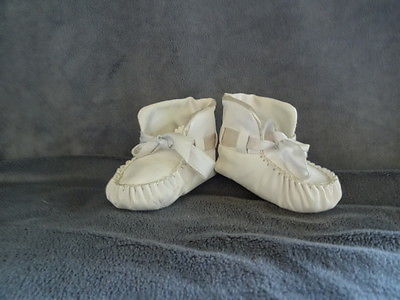 Title (ebay affiliate link): Pair of Vintage Antique White Leather Satin Lined and Laced Baby or Doll Shoes