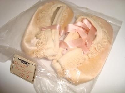 VINTAGE SATIN & LACE SHOES FOR ANTIQUE COMPOSITION DOLL NOS W/ TAGS 1950S