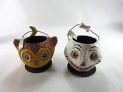 Title (ebay affiliate link): Dept. 56 Retired Halloween Paper Mache Ghoul Candy Containers Set of 2 Owl Skull