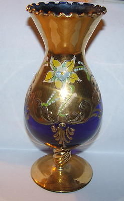 vintage 24kt cobalt blue Bohemia hand paint small vase