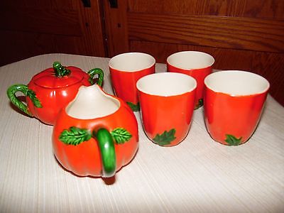 Title (ebay affiliate link): Vintage Maruhon Ware Red Tomato Creamer Sugar 4 Cup Set Pumpkin