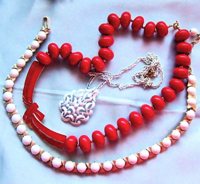 3 TRIFARI necklaces, chokers, enamel, bead, milk glass