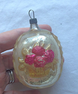 ANTIQUE VTG MERCURY GLASS CHRISTMAS TREE ORNAMENT CHRISTMAS ROSES GERMAN OLD