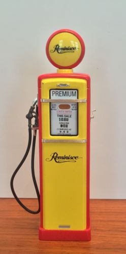 Title (ebay affiliate link): Flickering Top Globe Vintage Gas Pump Metal Toy Bank 1983 Reminisce Magazine