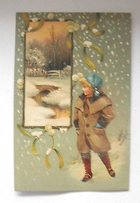 Title (ebay affiliate link): CHRISTMAS PRETTY GIRL WINTER SCENE EMBOSSED CIRCA 1908 POSTCARD