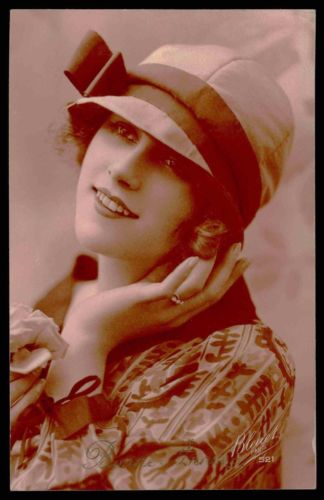 Title (ebay affiliate link): aRT dECO romance 1920s original vintage photo postcard lady flower hat smile