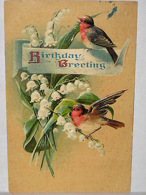 1910 POSTCARD BIRTHDAY GREETINGS COLORFUL SONGBIRDS