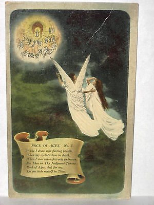 1910 POSTCARD ANGELS IN SKY, ROCK OF AGES