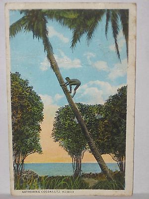 Title (ebay affiliate link): 1925 POSTCARD " GATHERING COCOANUTS, HAWAII " ( NATIVE CLIMBS TREE )