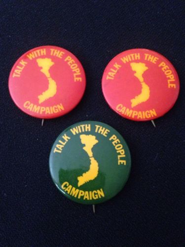 Title (ebay affiliate link): Three Vintage Talk With The People Campaign Buttons Indochina Vietnam