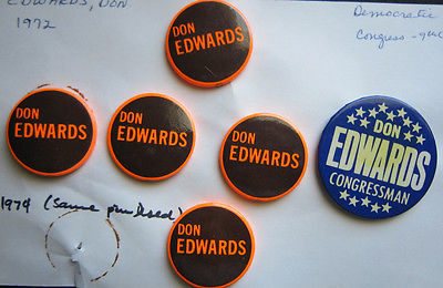 Title (ebay affiliate link): (6) Vintage 1972-74 Don Edwards (9th District-California) Campaign Buttons