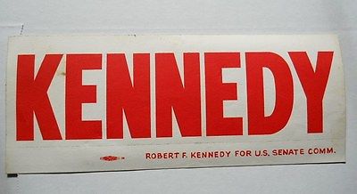 Title (ebay affiliate link): Robert F. Kennedy For U. S. Senate Original Vintage Bumper Sticker