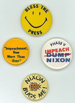 Title (ebay affiliate link): 4 Vintage 1970s Nixon Watergate Political Anti-Nixon Pinback Buttons Bless Press