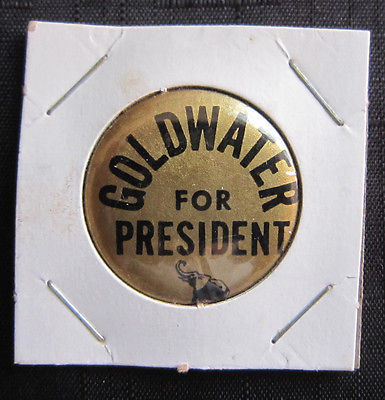 Title (ebay affiliate link): Vintage 1964 Goldwater For President Black on Gold Campaign Button