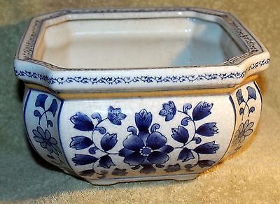 Blue and White Floral Unique Square Shaped Porcelain Stoneware Planter Vintage