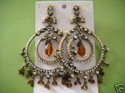 Antique Gold Wine Color Earrings Jewelry Handcrafted