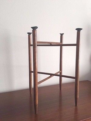 Simple HANS WEGNER style folding wood brass tray stand danish modern