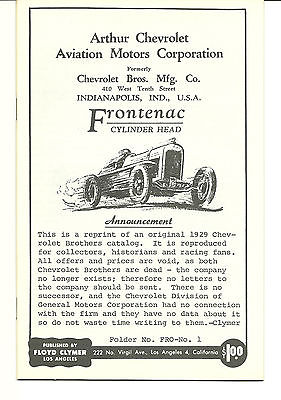 1929 Frontenac Cylinder Head Catalog, Chevrolet, Floyd Clymer