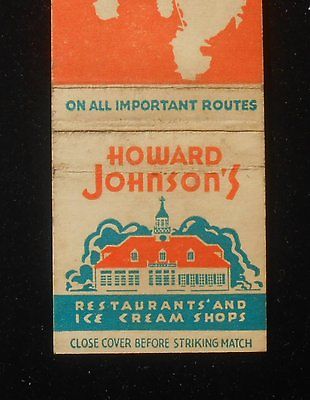 Title (ebay affiliate link): 1950s Matchbook Howard Johnson's Restaurants and Ice Cream Shops Quincy MA