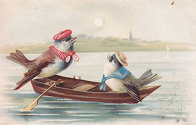 Title (ebay affiliate link): 1905 original colored pc, DRESSED "birds in a rowboat"