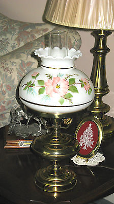 Vintage Gone With The Wind LAMP ~ Milkglass w/ Pink Floral Globe ~ Brass base