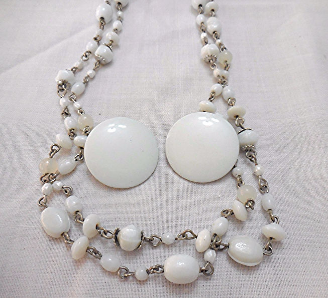 Title (ebay affiliate link): Vintage MILK Glass flapper Necklace & white clip earrings ~~ Reto antique