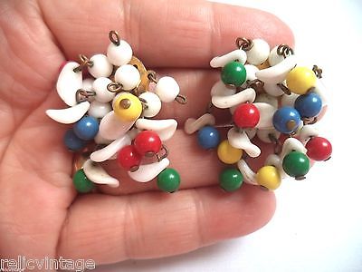Title (ebay affiliate link): GORGEOUS VINTAGE GOLD TONE DANGLE MILK GLASS BEADED CLIP EARRINGS!!! 3145K