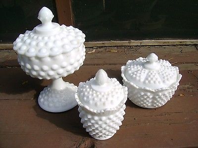 Title (ebay affiliate link): FENTON HOBNAIL WHITE MILK GLASS COVERED FOOTED BOWL - CANDY DISH - SUGAR BOWL