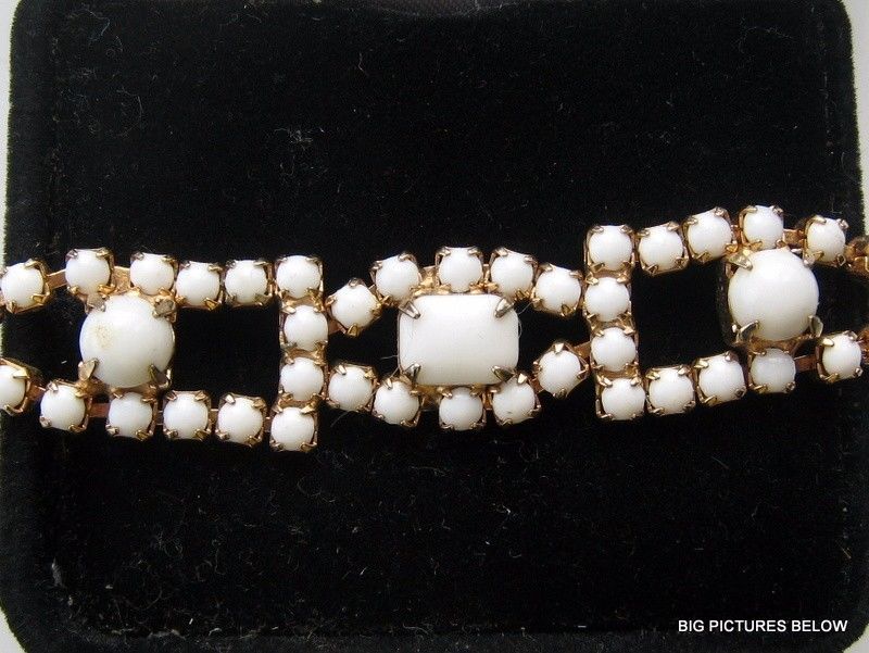 Title (ebay affiliate link): Vintage Bracelet Rhinestone Tennis Gold tone White Milk Glass Jewelry lot a