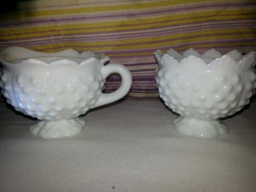 Fenton hobnail milk glass cream and sugar set