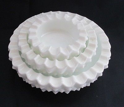 FENTON HOBNAIL MILK GLASS 3 PC NESTING ASHTRAY SET