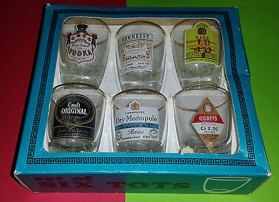 Title (ebay affiliate link): SET OF SIX TOTS SIX DIFFERENT LABEL SHOT GLASSES IN ORIGINAL BOX
