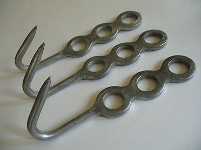 Lot 3 Vintage French Style Butcher Shop Meat Hooks Hangers Metal