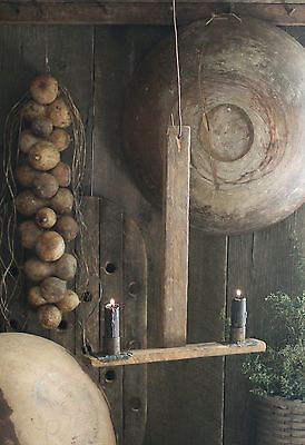 Title (ebay affiliate link): Primitive Early Lighting Inspired Tobacco Lath Wood Double Candle Hanger w/Stubs