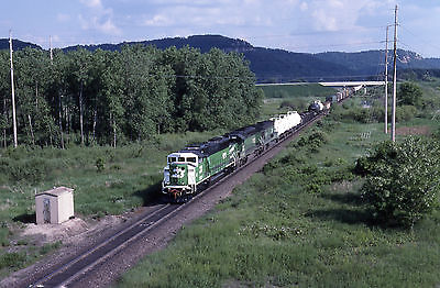 Orig Slide BN Burlington Northern SD60M #9211+2 w/Train @ La Crosse WI - 1995