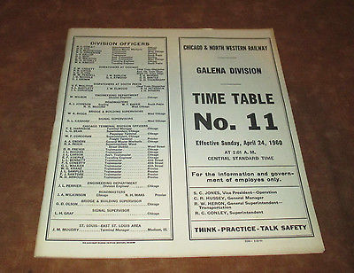 Title (ebay affiliate link): VINTAGE CHICAGO & NORTH WESTERN RAILWAY GALENA DIVISION TIMETABLE # 11 - 1960
