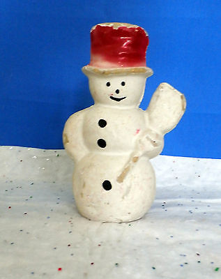 VINTAGE CHRISTMAS PAPER MACHE SNOWMAN WITH BROOM 7 INCHES