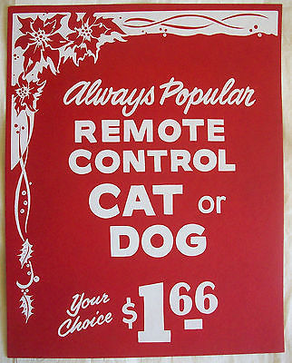 Vintage Christmas Store Advertising Sign Poster Remote Control CAT or DOG TOY