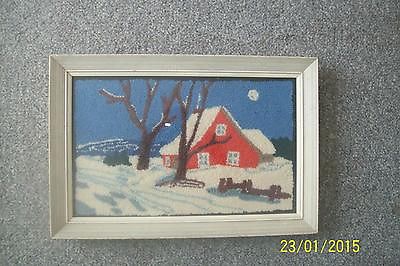 Title (ebay affiliate link): VINTAGE/ANTIQUE QUEBEC WINTER SCENE HAND HOOKED RUG IN OLD WOOD FRAME AND GLASS
