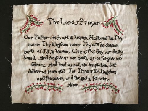 Title (ebay affiliate link): Lords Prayer Primitive Stitchery Home Decor. Country/rustic Handmade Fits 8x10
