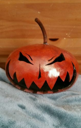 Title (ebay affiliate link): Primitive Halloween Jack o'lantern JOL Stained gourd